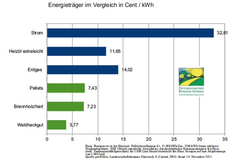Klimaschutz kann bares Geld sparen. Denn Holz ist ein vergleichsweise günstiger Brennstoff. Überzeugen Sie sich und rechnen Sie nach!
